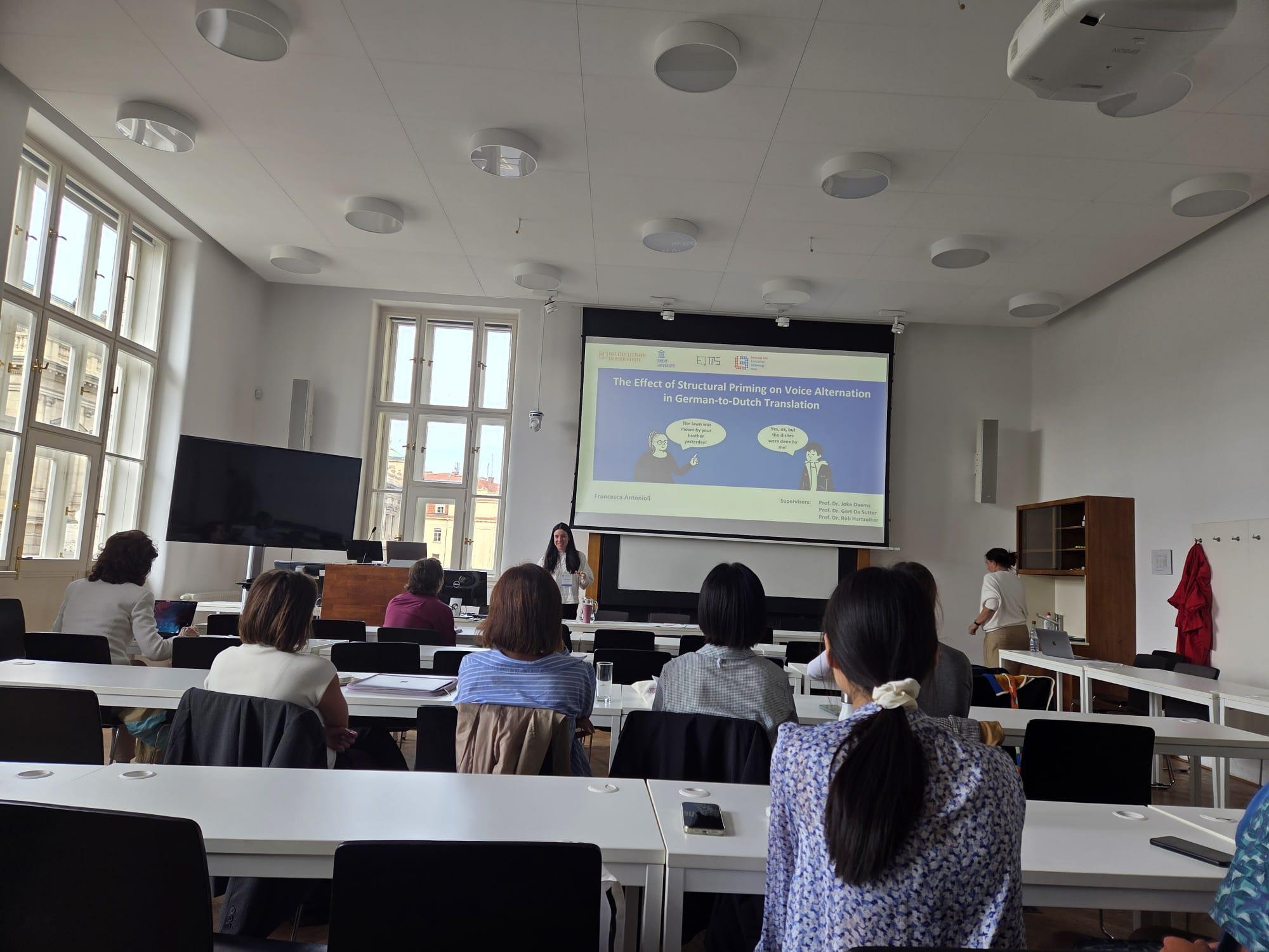 Her project investigates structural priming — the tendency to repeat recently processed syntactic structures — in German-to-Dutch translation, focusing on voice alternation between agentless passives and generalized actives. To study this, Francesca combines a corpus analysis with an experimental approach, offering complementary insights into how source-language structures influence translation choices.
